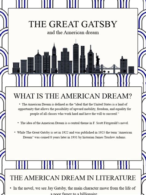 Hey guys, let’s dive into one of the most iconic characters in American literature: Jay Gatsby . F. Scott Fitzgerald’s masterpiece, The Great Gatsby , uses Gatsby as a central figure to explore the elusive and often corrupted American Dream . So, how does the character of Jay Gatsby represent the theme of the American Dream in the novel? Well, it’s complicated, and honestly, a bit tragic. Gatsby embodies the pursuit of the American Dream, the idea that anyone, regardless of their background, can achieve immense success and happiness through hard work and determination. He climbs from humble beginnings to amass a fortune, throws extravagant parties, and lives in a mansion – all the outward signs of success. However, Fitzgerald masterfully shows us that Gatsby’s dream isn’t just about wealth; it’s deeply intertwined with his desire to recapture the past, specifically his lost love, Daisy Buchanan. This is where the representation gets murky. The American Dream, at its core, promises upward mobility and personal fulfillment. Gatsby certainly achieves the upward mobility part, becoming one of the wealthiest men in West Egg. But is he fulfilled ? Not really. His entire existence is geared towards winning Daisy back, a goal that proves to be as unattainable as the green light flickering at the end of her dock. His wealth, his parties, his entire persona are all constructed as a means to an end – to impress Daisy and erase the five years they were apart. This highlights a crucial aspect of Fitzgerald’s critique: the American Dream, when reduced to material wealth and the pursuit of a singular, often idealized, goal, can become hollow and destructive. Gatsby’s relentless focus on Daisy blinds him to the reality of her character and her marriage, leading to his ultimate downfall. He is a man who has seemingly achieved everything, yet possesses nothing of true value because his dream is built on a foundation of illusion and desperation. The novel forces us to question what the American Dream truly is. Is it attainable? Or is it, as Gatsby’s story suggests, a gilded cage, a beautiful facade that hides a profound emptiness? Gatsby’s journey is a cautionary tale about the potential corruption of ideals when they become solely focused on external validation and the impossible desire to rewrite history. His character serves as a potent symbol of both the allure and the tragic limitations of the American Dream.