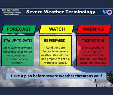 Okay, time to learn about those important warnings! Watches and warnings are issued by weather agencies to alert the public about potentially dangerous weather conditions. A weather watch means that conditions are favorable for a particular type of hazardous weather. A weather warning means that hazardous weather is imminent or has been reported in the area. Pay close attention to these alerts, as they can help you stay safe. When you hear a watch or warning, it’s important to take appropriate precautions, such as monitoring the weather, staying informed, and following the instructions of local authorities. It is important to know the difference between watch and warning alerts. These alerts are critical for your safety.