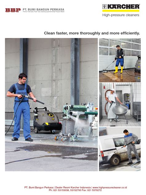 Karcher equipment is designed to make cleaning tasks more efficient and less time-consuming. Their pressure washers, for example, feature powerful motors and advanced nozzle technology that delivers superior cleaning performance with minimal effort. Vacuum cleaners are engineered with high-suction capabilities and efficient filtration systems to ensure thorough cleaning in a fraction of the time. This focus on efficiency not only saves you valuable time but also reduces water and energy consumption, making Karcher products an environmentally responsible choice. Karcher Indonesia understands that customers lead busy lives, and their products are designed to streamline the cleaning process, allowing you to maintain a clean and healthy environment with ease.
