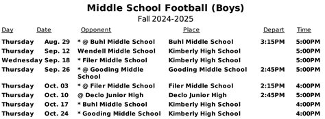 Alright, let’s get down to the nitty-gritty and break down the Kimberly Football Schedule 2024 . Knowing the schedule is the first step to being a true fan! We’ll look at the key dates, the teams they’ll be facing, and where you can catch all the action. The schedule is more than just a list of games; it’s a roadmap to a season filled with potential victories, tough battles, and unforgettable moments. Make sure to keep this guide handy so you never miss a kickoff. With each game, there’s a story to be told, a challenge to overcome, and a chance to witness the incredible teamwork and dedication of the Kimberly football players. So, keep an eye on these dates and make your plans to be there to support the team. Remember, the cheers, the energy, and the camaraderie of the fans can make all the difference, fueling the team’s drive and spirit. The schedule is also a great way to stay connected to the community and share in the excitement of high school football. The anticipation builds with each passing week, making every game a special event. Let’s make this a season of celebration, filled with unforgettable memories and moments of pure sportsmanship.