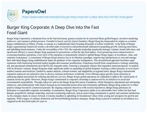 These global variations of the king burger showcase Burger King’s ability to innovate and adapt to local tastes. By incorporating regional ingredients and flavors, Burger King has successfully created a menu that appeals to a wide range of customers around the world. These adaptations not only enhance the burger’s appeal but also demonstrate the brand’s commitment to understanding and serving diverse markets. Whether it’s a teriyaki-glazed burger in Japan or a chorizo-topped burger in Latin America, the king burger continues to evolve and delight customers worldwide.