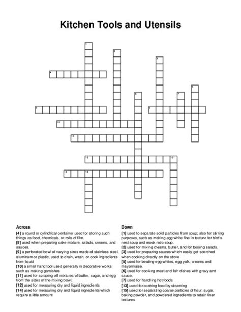 These are just a few examples of the many kitchen gadget clues you might encounter in a crossword puzzle. Remember to consider the length of the answer, the context of the puzzle, and any cross-referencing clues that might provide additional hints. By using these strategies , you’ll be well on your way to solving even the trickiest kitchen gadget clues.