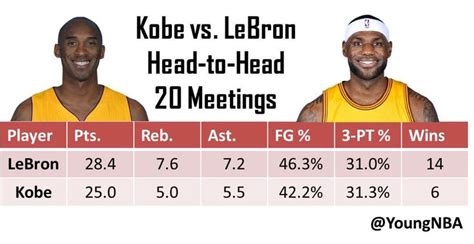 Alright guys, let’s get straight to the nitty-gritty: the actual games played between Kobe and LeBron. When these two squared off, it was always must-see TV. Their individual records against each other paint a picture of a fiercely competitive rivalry, with neither player giving an inch. In the 11 regular-season games they played against each other, LeBron James held the edge with 7 wins compared to Kobe Bryant’s 4 wins . This stat might surprise some, given Kobe’s legendary status and championship pedigree. However, it’s crucial to remember the context. These games often occurred during different phases of their careers, and the supporting casts around them varied significantly. LeBron’s teams, especially in his later years with the Cavaliers and Lakers, often had more consistent roster depth and star power. Kobe, on the other hand, had stretches where he carried a heavier load, often against stacked Eastern Conference contenders during LeBron’s initial championship runs with the Heat. Beyond the regular season, their rivalry extended to the NBA Finals , though they never met in a championship series. This is a point often brought up in the debate – they were dominant forces in the same league for so long, yet never got to clash for the ultimate prize. Imagine the fireworks if they had! The win-loss record in these direct matchups is just one piece of the puzzle, but it highlights LeBron’s slight edge in their personal battles throughout their careers. It’s a testament to LeBron’s incredible consistency and longevity, facing off against a prime Kobe and later iterations of the Lakers star. But remember, these numbers don’t tell the whole story of their impact on the game or their individual greatness.
