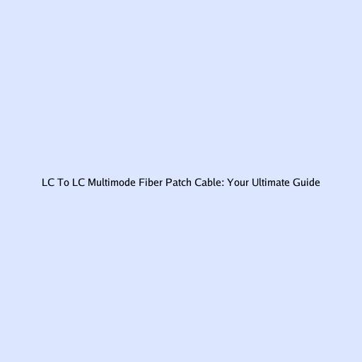 LC to LC Multimode Fiber Patch Cable: Your Ultimate Guide