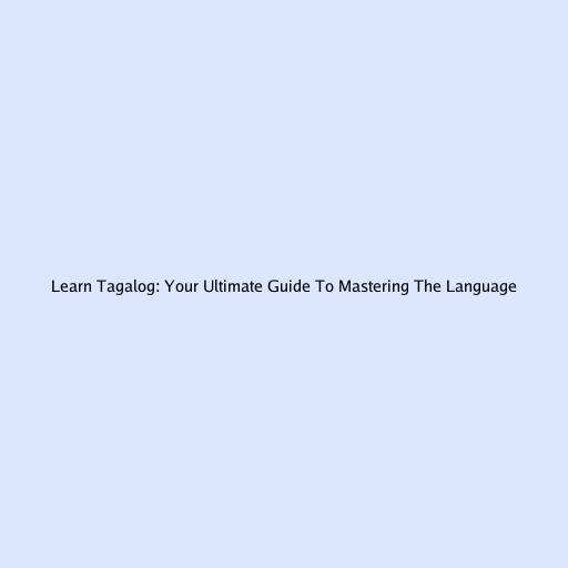 Learn Tagalog: Your Ultimate Guide to Mastering the Language
