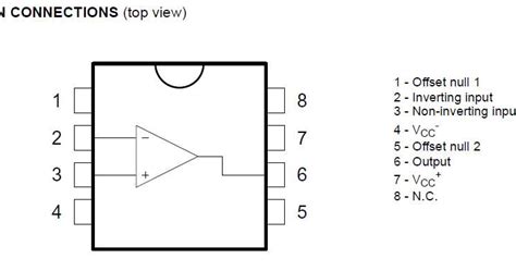 • Pin 5: Offset Null. This is the counterpart to Pin 1, also used for offset nulling. The exact configuration for offset nulling can vary slightly, so always check a reference circuit.