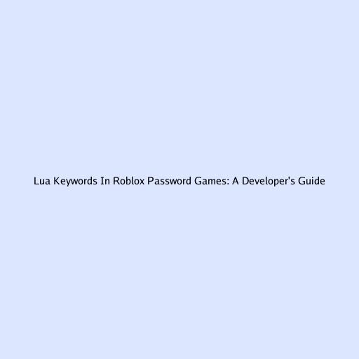 Lua Keywords in Roblox Password Games: A Developer’s Guide