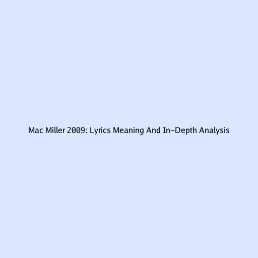 Mac Miller 2009: Lyrics Meaning and In-Depth Analysis