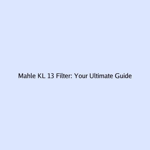 Mahle KL 13 Filter: Your Ultimate Guide
