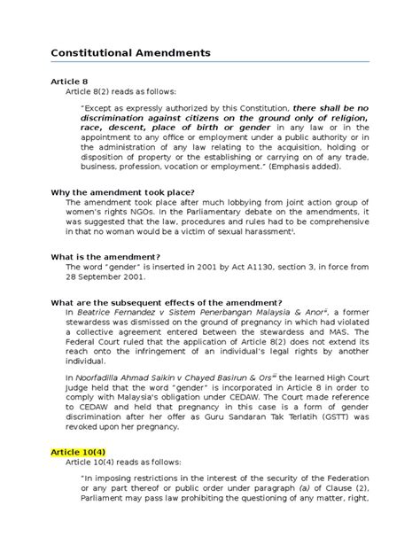 Hey guys! Let’s dive into something super important for understanding Malaysia: the Constitution of Malaysia . You know, that foundational document that lays down the rules for how the country is run. It’s not a static thing, though; it gets amended to keep up with the times and address new challenges. Today, we’re going to unpack some of the key amendments that have shaped Malaysia into the nation it is today. Understanding these changes is crucial, whether you’re a student, a policymaker, or just a curious Malaysian who wants to know how things tick.