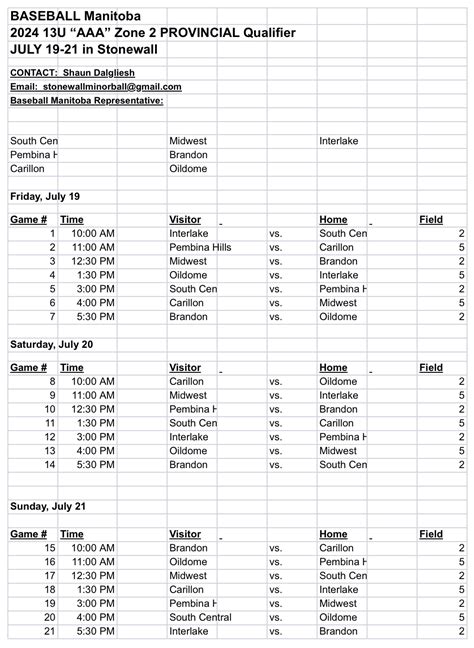 • Check the Baseball Manitoba Website: This is your go-to source for the official schedule, game times, and venue locations. This is where you’ll find the most accurate and up-to-date information.