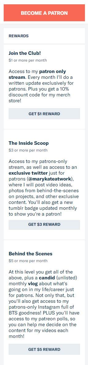 Now, let’s talk about the tiers. Mary Kate’s Patreon page offers several tiers, each with its own unique set of perks. These tiers are designed to cater to different levels of support and engagement, ensuring that fans can choose the option that best fits their interests and budget. Whether you’re looking for basic access to exclusive content or a more immersive experience with personalized interactions, there’s a tier for you.