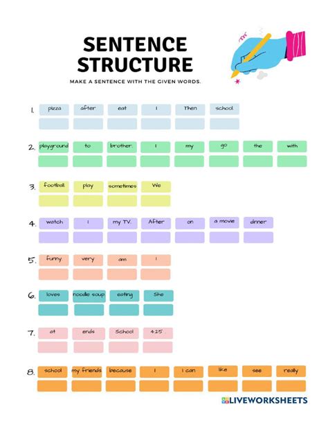 So, about that PDF guide we mentioned? This guide is packed with examples, exercises, and tips to help you master sentence construction. It covers everything from the basics of subject-verb agreement to more advanced topics like using parallel structure and avoiding dangling modifiers. You can use it as a reference tool when you’re writing, or you can work through the exercises to practice your skills. The guide also includes a glossary of key terms, so you can easily look up any unfamiliar words or concepts. To get the most out of the guide, start by reading through the introductory sections to get a solid understanding of the fundamentals. Then, work through the exercises in each section, paying close attention to the examples provided. If you’re struggling with a particular concept, don’t be afraid to go back and review the material. You can also use the guide to identify your weaknesses and focus your practice on those areas. For example, if you consistently make mistakes with subject-verb agreement, you can spend extra time working on those exercises. The PDF guide is designed to be a comprehensive and user-friendly resource for anyone who wants to improve their sentence structure. Whether you’re a student, a professional, or just someone who wants to communicate more effectively, this guide can help you achieve your goals. So, download the guide, start working through the exercises, and get ready to take your sentence-building skills to the next level! Remember, practice makes perfect, so the more you use the guide, the more confident you’ll become in your ability to construct clear, concise, and effective sentences.