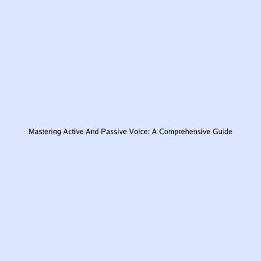 Mastering Active and Passive Voice: A Comprehensive Guide