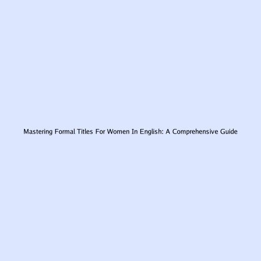 Mastering Formal Titles For Women In English: A Comprehensive Guide