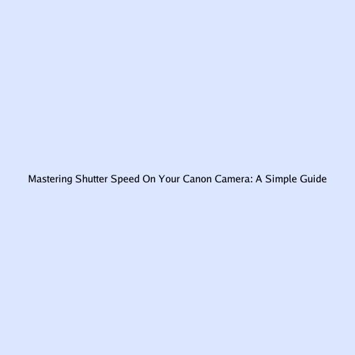 Mastering Shutter Speed on Your Canon Camera: A Simple Guide