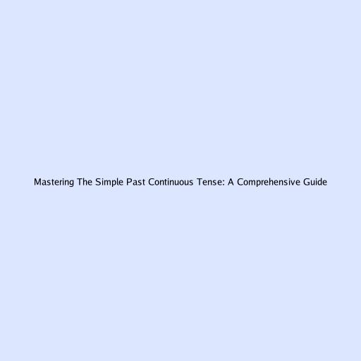 Mastering the Simple Past Continuous Tense: A Comprehensive Guide