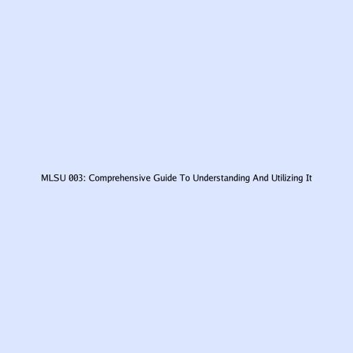 MLSU 003: Comprehensive Guide To Understanding And Utilizing It