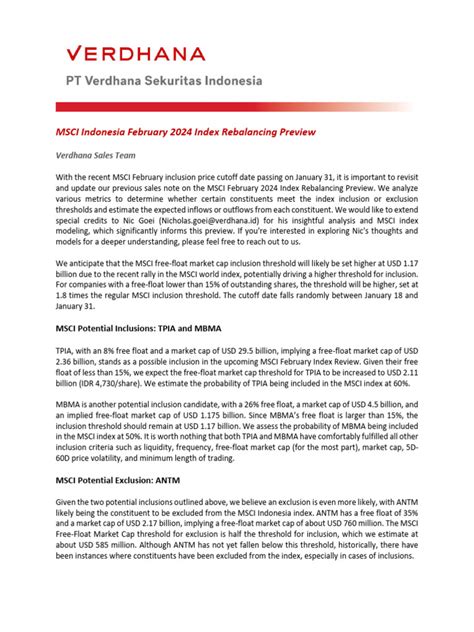 Okay, let’s get down to the nitty-gritty. What are the key factors that could potentially move the MSCI Indonesia Index in 2024? A bunch of things could happen, so we’ve gotta be ready to analyze different angles.