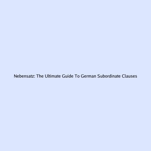 Nebensatz: The Ultimate Guide to German Subordinate Clauses