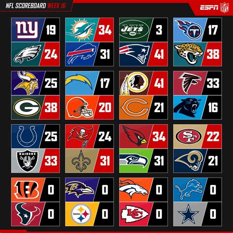 Keeping up with live NFL scores is paramount for any football enthusiast. ESPN understands this, which is why it provides a robust system for delivering real-time updates. When you visit the NFL scores section, the scores are updated automatically. You won’t have to refresh the page constantly to see the latest changes. This live updating feature is a huge plus, allowing you to follow the action as it unfolds, even if you can’t watch the game live. Besides the scores, expect to see other real-time data, like play-by-play updates, key stats, and even drive charts. All of this information is vital for grasping the flow of the game and staying informed.