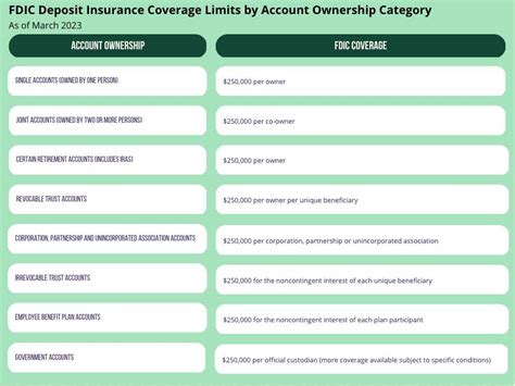 • Know Your FDIC Coverage: The most important thing is to know that your deposits are insured up to \(250,000 per depositor, per insured bank. That means if you have multiple accounts, make sure the total balance in each account is within the insured limit. You can use the FDIC's online tools to calculate your coverage and ensure you're protected. If you have more than \) 250,000 in deposits, you can spread your money across different banks to stay within the insurance limits. Consider using different account ownership categories, such as individual accounts, joint accounts, and trust accounts, to maximize your coverage. Make sure to understand the rules. For example, a trust account might have different coverage limits. Keep good records of all your accounts and their balances. This will make it easier to understand your coverage and to file a claim if needed. Review your account information regularly to ensure that everything is accurate and up to date.