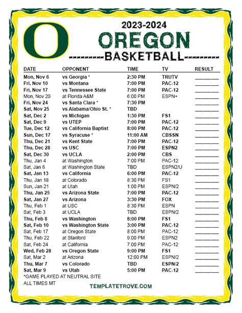 The Oregon Ducks basketball schedule kicks off with a series of non-conference games that are crucial for building momentum and testing the team’s mettle before the grueling Pac-12 play begins. These early season matchups are often where we see new talent emerge and established stars shine. We’ll be facing a diverse range of opponents, each with their own strengths and styles of play. Think of these games as the ultimate proving ground, where the Ducks can refine their strategies, build chemistry, and develop that winning mindset. Expect some high-octane offense, tenacious defense, and of course, that signature Oregon hustle that we all know and love. These games aren’t just warm-ups; they’re opportunities to make a statement, boost the team’s confidence, and give us fans plenty to talk about as we head into conference play. Keep an eye out for potential upsets and breakout performances – you never know what magic might happen in these early contests. We’re talking about building a foundation for success, and these non-conference games are the bedrock. It’s all about starting strong, getting those early wins, and showing the rest of the country what the Oregon Ducks are made of. So, grab your lucky UO gear, get ready to settle in, and let’s watch our Ducks soar in these pivotal non-conference showdowns. It’s going to be epic, guys!