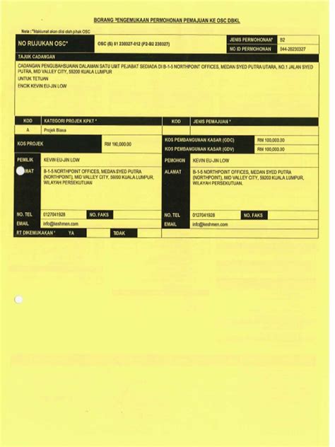 With all your documents in order, you can now submit your application to the OSC Pusat Setempat DBKL . You can usually do this in person at the OSC counter or through an online submission portal, if available. Make sure you keep a copy of your application and all supporting documents for your records. When submitting, you will typically need to pay the relevant processing fees. The fees vary depending on the type and scale of the project.