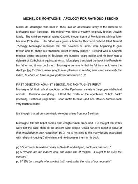 - Sebond and Its Mysteries