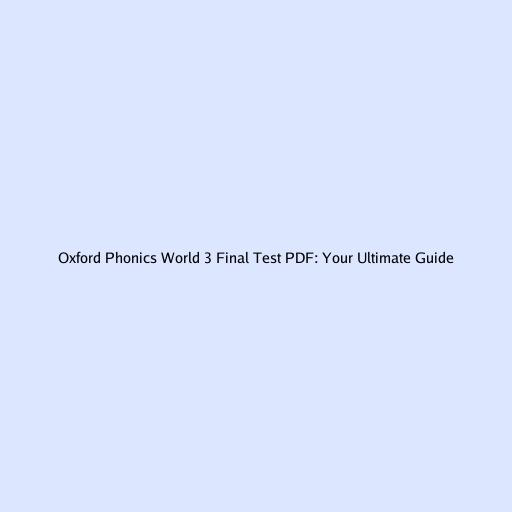 Oxford Phonics World 3 Final Test PDF: Your Ultimate Guide