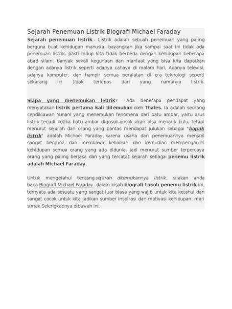 Dia sering banget ngomongin soal buku-buku sains yang dia baca itu. Ternyata, salah satu buku yang paling mempengaruhinya adalah buku tentang listrik. Waktu itu, listrik masih jadi misteri besar, cuma sesuatu yang bikin bulu kuduk berdiri atau kadang-kadang bikin orang kesetrum. Tapi Faraday melihatnya sebagai sesuatu yang lebih. Dia mulai melakukan eksperimen-eksperimen sederhana di rumahnya, cuma pakai alat seadanya. Ini menunjukkan betapa tekun dan gigihnya dia dalam mengejar ilmunya, meskipun tanpa fasilitas yang memadai. Kebetulan banget, ada seorang pelanggan di toko buku tempat dia kerja yang sering beli buku sains, namanya George Riebau. Riebau ini jadi semacam ‘mentor’ awal buat Faraday, dia dorong Faraday buat terus belajar dan bahkan ngasih beberapa saran tentang eksperimen. Tapi, titik baliknya itu bener-bener pas dia dapet kesempatan buat nonton kuliah dari salah satu ilmuwan paling terkenal saat itu, yaitu Sir Humphry Davy. Nggak kebayang kan, guys, seorang anak penjilid buku bisa nonton kuliah dari ilmuwan top? Nah, ini yang bikin semangat Faraday makin membara. Dia nyatet semua yang dikasih tau Davy, bahkan sampai detail-detail kecilnya. Dari sini, mimpi besarnya buat jadi ilmuwan mulai terbentuk kuat. Perjalanan hidup Faraday ini bukti nyata kalau pendidikan formal itu penting, tapi semangat belajar dan rasa ingin tahu yang besar itu jauh lebih penting lagi untuk bisa meraih mimpi, bahkan dari nol sekalipun. Jadi, jangan pernah berhenti belajar ya, guys!