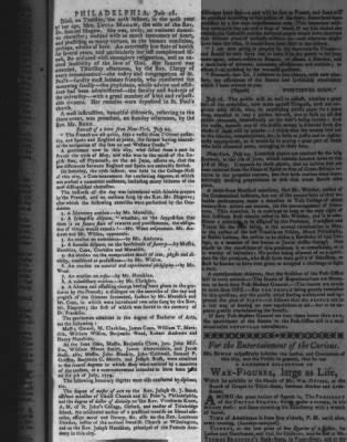 For example, the Historical Society of Pennsylvania has a vast collection of historical documents, including newspapers, that may be available online or in person.