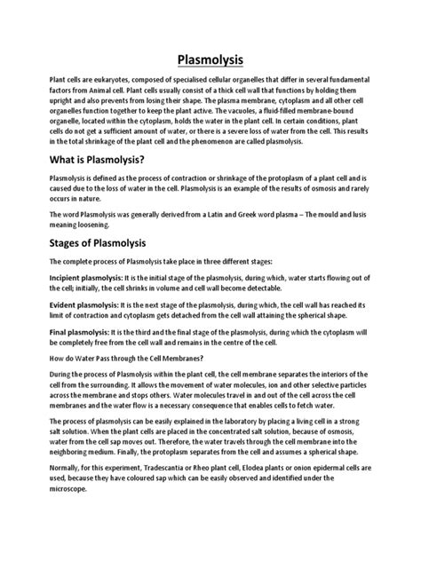 So, plasmolysis isn’t just a one-size-fits-all situation, guys. There are actually a couple of ways this can go down, depending on how severe the water loss is. We usually talk about incipient plasmolysis and evident plasmolysis . Let’s break these down so you can impress your friends with your biology knowledge!