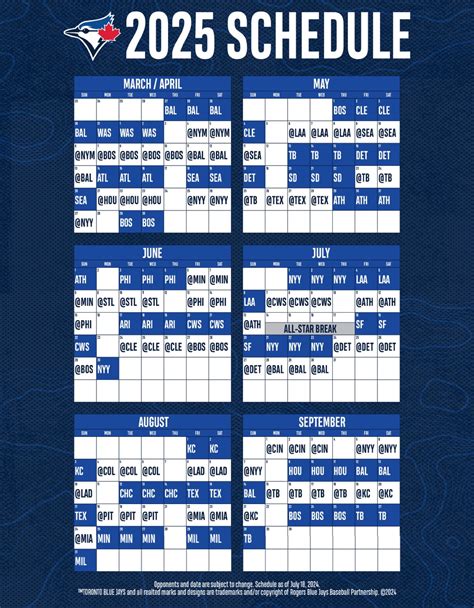 First things first, let’s break down the components of a typical schedule. Each game entry generally includes the date, time, opponent, and location. However, a closer look reveals much more. For instance, the opponent’s record and recent performance can offer insights into the game’s difficulty . Is the team on a winning streak, or have they been struggling lately? This can significantly impact the game’s outcome. Moreover, the location of the game plays a huge role. Playing at home grants the Blue Jays certain advantages, such as a supportive crowd and familiarity with the field. Away games, on the other hand, can present challenges like travel fatigue and the opposing team’s home-field advantage. Also, the schedule often reveals crucial information about the team’s strengths and weaknesses. By considering these details, we can start to see patterns and make more informed predictions. We need to remember that the schedule is dynamic and subject to change. Rainouts, injuries, and other unexpected events can lead to alterations. The best way to stay informed is to keep an eye on official team communications and reputable sports news sources. By staying informed, we can avoid being caught off guard and always be on top of the latest developments. Remember, understanding the schedule is about more than just knowing when the games are. It’s about developing a strategic mindset that enables you to better follow and enjoy the season.