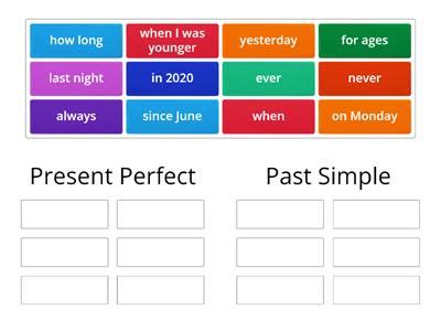 Design a matching game where students pair time expressions with the correct tense. One side could have phrases like “ last year ” or “ two weeks ago ” (for Past Simple ), and the other side could have “ ever ” or “ since 2005 ” (for Present Perfect ). This helps students recognize the common time markers associated with each tense. Matching games are a classic and effective way to reinforce vocabulary and grammar concepts. They require students to actively recall information and make connections between different elements. In this case, students must associate specific time expressions with the appropriate tense. To enhance the challenge, you can include similar time expressions that might be confusing, such as “ in the last year ,” which could be used with either tense depending on the context. The visual nature of the matching game makes it appealing to visual learners, who benefit from seeing the relationships between different concepts. Additionally, the game can be played individually or in pairs, promoting collaboration and peer learning. By successfully matching the time expressions with the correct tenses, students gain a deeper understanding of how these tenses are used in context.