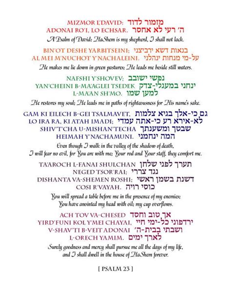 Hey guys, let’s dive into one of the most beloved passages in the Bible, Psalm 23 . You probably know it by heart in English, but have you ever wondered what it looks like and sounds like in its original Hebrew? Today, we’re going to explore the Hebrew lyrics of Psalm 23 , breaking down its beauty, its nuances, and why it resonates so deeply with people across generations. It’s more than just words; it’s a profound expression of faith, trust, and divine guidance. We’ll go through the Hebrew text, look at transliterations to help with pronunciation, and touch upon some of the unique meanings that shine through when you read it in the language it was penned. So, grab a cup of coffee, get comfy, and let’s embark on this spiritual journey together. Understanding the original language can unlock a whole new dimension of appreciation for this timeless psalm. We’ll make sure to cover each verse, offering insights that might surprise you and deepen your connection to this incredible piece of scripture. Get ready to be inspired!