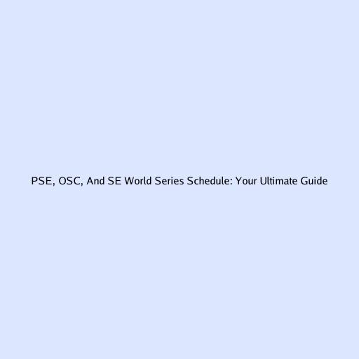 PSE, OSC, And SE World Series Schedule: Your Ultimate Guide