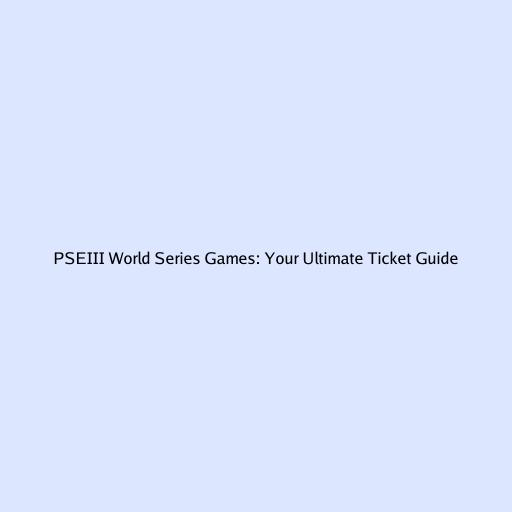 PSEIII World Series Games: Your Ultimate Ticket Guide