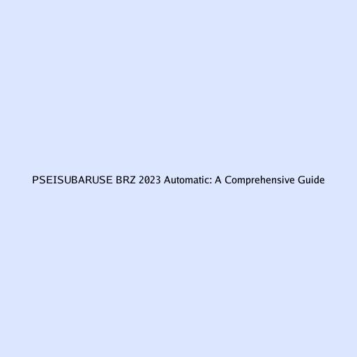 PSEISUBARUSE BRZ 2023 Automatic: A Comprehensive Guide