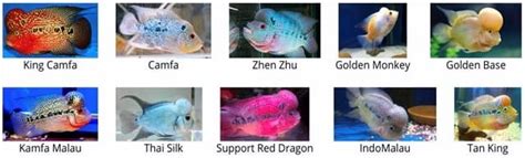 • King Kamfa: King Kamfas are known for their pearly scales, intense coloration, and impressive kok development. They are considered one of the premium flowerhorn varieties.