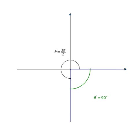 • The angle between the negative y-axis and the positive x-axis is \(\frac{\pi}{2}\) radians (or 90 degrees).