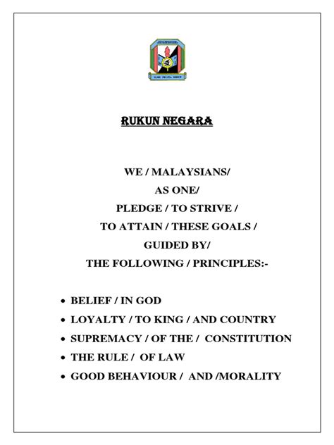 So, what exactly is the Rukun Negara pledge, and why is it such a big deal in Malaysia? The Rukun Negara, which translates to ‘National Principles,’ is essentially the ideological foundation of Malaysia . It was formulated in 1970 by the National Consultative Council following the tragic May 13th incident. The main goal was to foster unity and stability among the diverse ethnic groups in Malaysia. It’s more than just words; it’s a set of core beliefs that every Malaysian is encouraged to uphold. When we talk about the Rukun Negara pledge in English, we’re referring to the translated version of these five principles. These principles are: Belief in God, Loyalty to King and Country, Upholding the Constitution, Rule of Law, and Good Behaviour and Morality. Each of these pillars plays a vital role in shaping the Malaysian identity and ensuring a harmonious society. Understanding the pledge is crucial for appreciating the nation’s aspirations and the values it holds dear. It serves as a constant reminder of the shared responsibilities and commitments that citizens have towards their country and fellow Malaysians. The pledge is often recited during national events, ceremonies, and in educational institutions, embedding its message into the fabric of Malaysian life. By delving into each principle, we can better understand the historical context and the enduring relevance of the Rukun Negara in fostering national unity and progress. It’s a guidepost for building a stronger, more cohesive, and resilient nation for all its people. So, buckle up, as we’re about to unpack each of these important principles one by one!