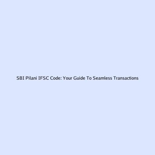 SBI Pilani IFSC Code: Your Guide To Seamless Transactions