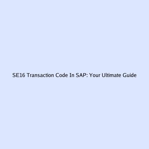 SE16 Transaction Code in SAP: Your Ultimate Guide