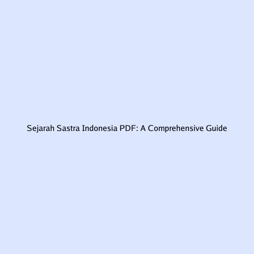 Sejarah Sastra Indonesia PDF: A Comprehensive Guide