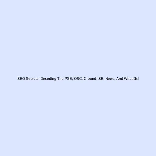 SEO Secrets: Decoding The PSE, OSC, Ground, SE, News, And What Ifs!