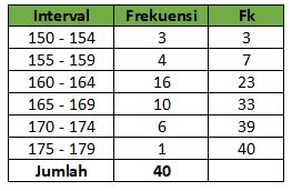 Langkah 1: Buat Tabel Frekuensi Kumulatif