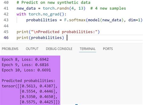 probabilities = nn.functional.softmax(logits, dim=1) # Applying softmax manually