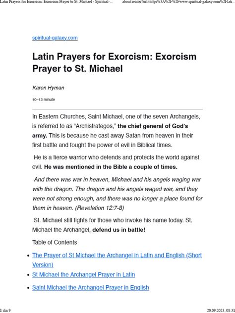 Alright, let’s get to the nitty-gritty ! Here’s the Latin version of the St. Michael Prayer. For those who appreciate the beauty and tradition of the Latin language, this version holds a special significance. The rhythmic cadence and ancient roots of the language add a layer of depth and reverence to the prayer. Even if you don’t understand Latin fluently, the sound of the words can be deeply moving and evocative. Many people find that reciting the prayer in Latin connects them to centuries of believers who have sought the protection of St. Michael. The Latin version is also often used in more formal settings, such as liturgical celebrations and solemn invocations. Whether you’re a seasoned Latin scholar or a complete beginner, take a moment to appreciate the power and beauty of this timeless prayer in its original language. Understanding the Latin version can provide insight into the nuances of the prayer and its historical context. Each word carries a weight of tradition and meaning, reflecting the deep spiritual significance of the prayer. By reciting it in Latin, you are joining a long line of believers who have sought the protection of St. Michael throughout the centuries. Here it is: