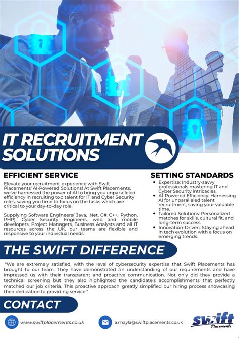 Hey guys! So, you’re on the hunt for a new gig or maybe you’re a business owner looking to beef up your team. Whatever your hiring needs, finding the right recruitment agency can be a total game-changer. Today, we’re diving deep into Swift Recruitment Agency , focusing on how you can get in touch with them and why they might just be the perfect fit for you. We’ll explore their contact number, other ways to connect, and what makes them stand out in the bustling world of recruitment.
